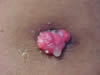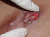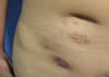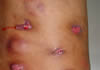 Se trata de paciente femenina de 19 años de edad, natural y procedente de Maturin Estado Monagas; quien consulta en Abril del 2005, por presentar en el mes de Octubre de 2004 dolor en región lumbar y flanco derecho, un mes después comienza a presentar múltiples nódulos que se abscedan y fistulizan en la misma localización, así como en la región inguinal por debajo de la cicatriz de la apendicectomía. Motivo por el cual fue evaluada en hospital de origen, recibiendo múltiples tratamientos con antibioticos sin mejoría. ANTECEDENTES PERSONALES: Asma hasta hace 10 años, herniorrafia umbilical en Febrero de 2003 y Apendicectomia en Julio de 2003. Al examen físico se evidencia Fototipo IV, nódulos de diferentes tamaños (entre 1 a 3 cm), algunos ulcerados (figura 1-2-3)