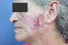 Paciente femenina de 67 años natural de Capacho, estado Táchira, zona agricultora quien refiere inicio de EA en 1997 cuando comienza a presentar úlceras simétricas en cara . Acude a facultativo regional quien le realiza diagnóstico de leishmaniasis cutánea y le inicia tratamiento con glucantime 20 dosis e inmunoterapia 3 dosis con mejoría parcial hasta 1998 cuando vuelve a presentar incremento en el tamaño de las lesiones por lo que acude nuevamente a facultativo del Táchira quien realiza pruebas intradérmicas, con PPD positivo 12 mm, leihmanina 12 mm en el contexto de una paciente sintomática respiratoria y con una biopsia inicial que reflejaba enfermedad granulomatosa se decide iniciar tratamiento antituberculoso triple que cumple por 3 meses con mejoría. Posterior a ello presenta una evolución irregular con reactivación alterna con períodos de mejoría de las lesiones hasta el año 2005 motivo por el cual acude y se ingresa en el Hospital Vargas.